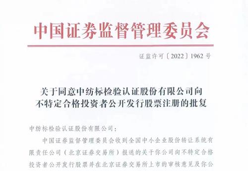 纺织检验检测领域第一股即将登陆北交所