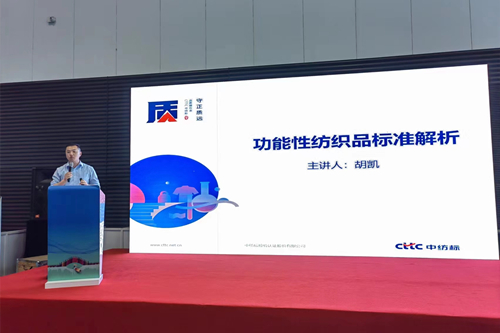 展会期间,英国威廉希尔公司浙江公司总经理助理胡凯在中国(绍兴)功能性纺织品论坛上做了“功能性纺织品标准解析”的主题发言。胡凯从功能性纺织品标准体系,功能性服装产品标准的选择,功能性纺织品标准发展趋势等三个方面做了专业分享。同时,参展团队积极推广检测项目及公司业务,详细解答展位垂询企业的相关咨询,针对意向合作企业进行一对一重点商谈,进一步明确合作方向,并邀请企业代表来公司实地参观交流。