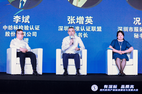 经过多年的发展,深圳已发展成为国内行业门类最齐全、原创品牌最集中、产业配套最完善、规模集聚效应最显著的时尚产业基地之一,服装时尚产业在全国处于引领地位,更是被誉为“中国女装之都”。深圳标准定位于“国内领先,国际一流”的评价体系,以先进标准、卓越品质为评价维度验证产品性能和服务体验,突显产品和服务的竞争优势;以城市品牌的形象,为市场推介优秀的产品和优质的服务,向社会传递高标准引领、高质量发展的理念。本次有多家服装企业产品获得深圳标准认证证书,与会领导共同为获证企业颁发了深圳标准认证证书。