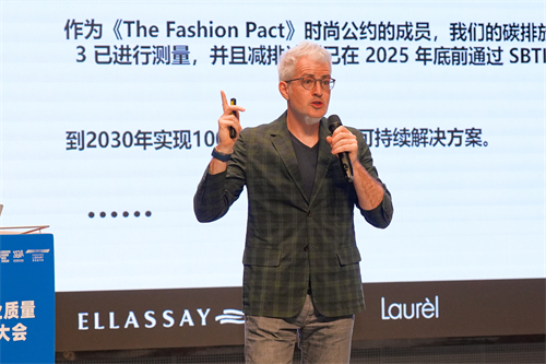 歌力思集团首席可持续时尚官Dominique Simard司马德明在《可持续发展与ESG:高端时装品牌集团的实践与启示》的报告中,分别从减少碳排放、倡导循环经济、保护生物多样性三大可持续发展议题,向参会嘉宾展示企业绿色发展成果。