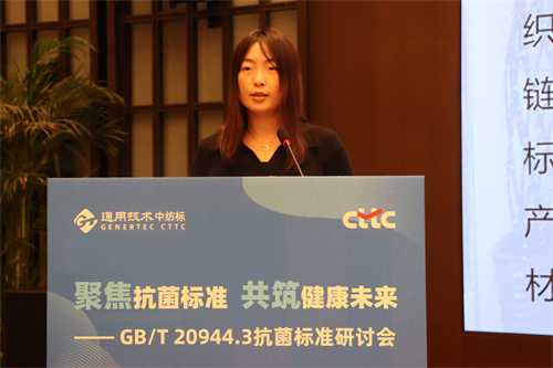 浙江省现代纺织技术创新中心高级工程师方斌在致辞中表示,在当前注重健康与安全的时代背景下,抗菌纺织品的市场增长很快,纺织品抗菌国家标准的修订工作迫在眉睫。抗菌标准的修订具有一定的复杂性,需要结合实践经验,凝练技术规范和管理要求,更需要行业专家和企业共同参与。希望通过本次研讨会的交流和讨论,能够达成共识,形成合力,共同推动抗菌纺织标准的修订和实施,助力抗菌纺织产业健康发展。