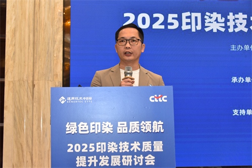 陈沛在致辞中表示:印染作为纺织产业链的关键环节,其技术与质量水平至关重要,而传统发展模式下环境污染、质量稳定性不足等问题阻碍了行业发展。此次研讨会围绕印染前沿技术、发展趋势、质量管控等议题展开交流,旨在提升印染产品质量。他指出,高品质产品是赢得市场的关键,而绿色低碳发展是印染行业的必由之路,需要从业者将环保理念融入企业各个环节。他期待通过研讨会凝聚行业智慧共识,推动印染技术质量迈向新台阶,为纺织行业高质量发展贡献力量,以绿色印染引领美好未来。