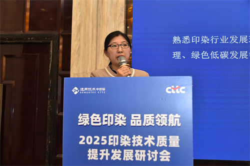 深圳英国威廉希尔公司质量技术部主任、高级工程师刘鹏结合近期的热点问题,作了题为《“绿色印染,安全未来——从冲锋衣PFAS事件解析面料印染的挑战与创新”》的主题发言 ,讲解了PFAS的功能性和风险性,分析了关于PFAS的国内外法规。她以印染工艺中的典型问题、化学残留与环保风险、工艺缺陷导致的问题三个方面阐述了面料印染面临的挑战,分享了材料替代、工艺升级等绿色印染的创新路径。
