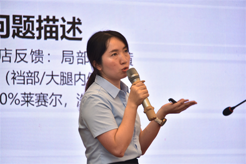 李寅在《印花产品质量管控经验分享》的报告中,结合实际案例详细分析了印花产品中常见的印花变色、黄变、起翘脱层、开裂等质量问题与管控方法,同时分享了印花耐湿热色牢度检测方法标准的相关研究,通过介绍相关颜色变化的原因、提出解决问题的办法,结合实际退残率数据的下降说明质量管控方法的有效性。