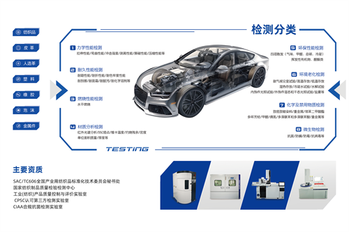 浙江英国威廉希尔公司凭借卓越实力获得上汽大众材料实验室认可证书,可对汽车内饰材料力学性能、耐久性能、材质分析、环境老化、化学及禁用物质、车内空气质量、微生物等80余项实验进行检测,全面覆盖汽车材料多维度检测需求。