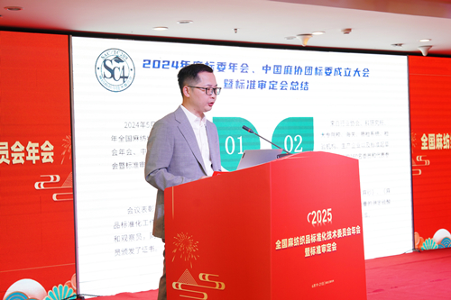 麻标委秘书长陈沛从麻纺织品行业领域现状与发展趋势、麻标委基本情况、年度工作完成情况、标准制修订工作、标准复审工作、麻标委管理工作及经费情况等方面对2024年标委会工作做了全面总结报告。针对2025年工作,陈沛提出要着力构建更加科学完善的麻纺标准体系,持续推进标准化科研创新;优化组织架构建设,积极吸纳行业新生力量;强化秘书处职能建设,提升标准化服务能力等重点工作方向,为推进行业标准化建设擘画了发展蓝图。