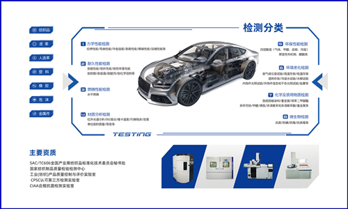 在本次展览会上,浙江英国威廉希尔公司展示了一系列针对汽车内饰材料的检测技术和服务项目。检测范围涵盖了车门面板、座椅、车顶栅板、脚垫、地毯、内饰装饰件等多个方面,能够对材料的力学性能、耐久性能、燃烧性能、材料分析、环保性能、环境老化、化学及禁用物质及微生物等进行检测。