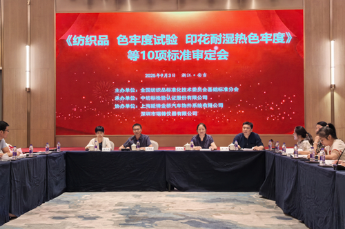 2025年9月3日~4日,全国纺织品标准化技术委员会基础标准分会(TC209/SC1)在安吉召开了《纺织品 色牢度试验 印花耐湿热色牢度》等10项国家标准和行业标准审定会。中国纺织工业联合会科技发展部副主任、全国纺织品标委会基础标准分会主任委员孙锡敏,通用技术中国纺织科学研究院有限公司总经理、全国纺织品标委会基础标准分会副主任委员马咏梅,全国纺织品标委会基础标准分会顾问郑宇英出席会议。来自科研院所、海关、质检系统、检验机构、生产企业以及标准起草单位的120余名代表参加了本次会议。