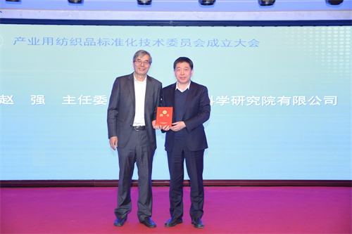 会议为纺织材料及纺织品标准化领域委员会副主任委员赵强和秘书长颁发聘书。
