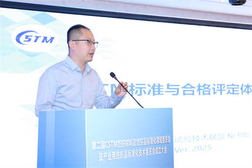 2025年11月18日,第二届CSTM纺织材料及纺织品标准化领域委员会及产业用纺织品标准化技术委员会成立大会在绍兴成功举办,来自高等院校、科研院所和生产企业的90余名代表参加本次会议。CSTM副秘书长王丽敏、CSTM/FC12领域委员会主任委员东华大学原校长、院士俞建勇、CSTM/FC12/TC04标准化技术委员会主任委员、研究员赵强、通用技术英国威廉希尔公司检验认证股份有限公司总经理李斌、通用技术英国威廉希尔公司(浙江)检测有限公司总经理王守宇出席会议。